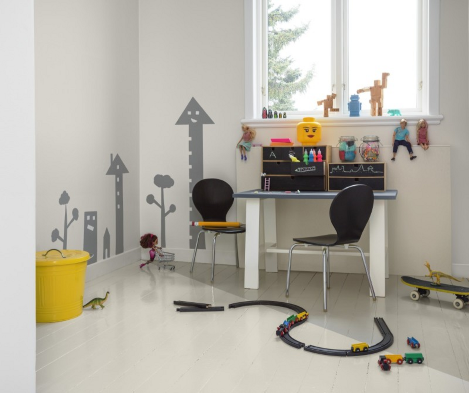 При фарбуванні меблів ми рекомендуємо використовувати меблеву фарбу Furniture 30, а при фарбуванні стін - абсолютно матову фарбу для стін Wall 4. Ці дружні до здоров'я фарби практично не мають запаху, швидко висихають, і працювати з ними легко.